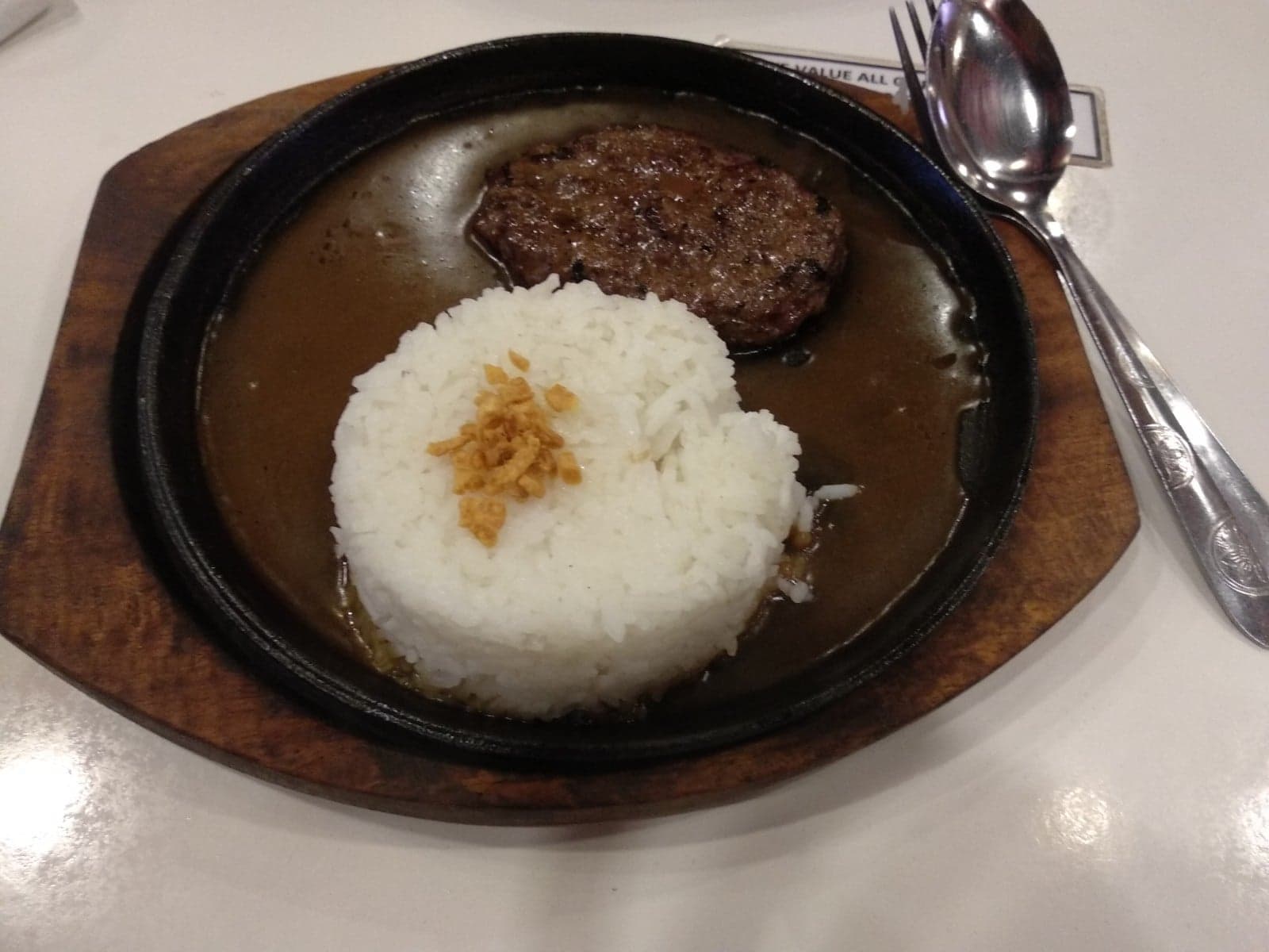It is our first time here in this store so we got no idea what to order, they got so many varieties of food such as rice meals, burgers, drinks and etc. The staffs is so well-trained they got to serve us within like 3-5 minutes. We ordered their best selling rice meal: Ala Pobre Rice, we didn’t get to order their burgers because we thought that the store’s specialty is burgers, we ordered something not burger to test if the food’s taste is good or not. First bite got us so interested to eat more, the meal has the tasteful texture cause of the sauce, the meal is sizzling when it was served to us which is the best thing to see when serving, the food was good, the steak’s meat is top of the line cause it is a premium beef, based on the looks it is smoked to perfection. When you have literally low on money this is the top suggested place for you to eat, they are famous for their burgers so you should try theirs too!